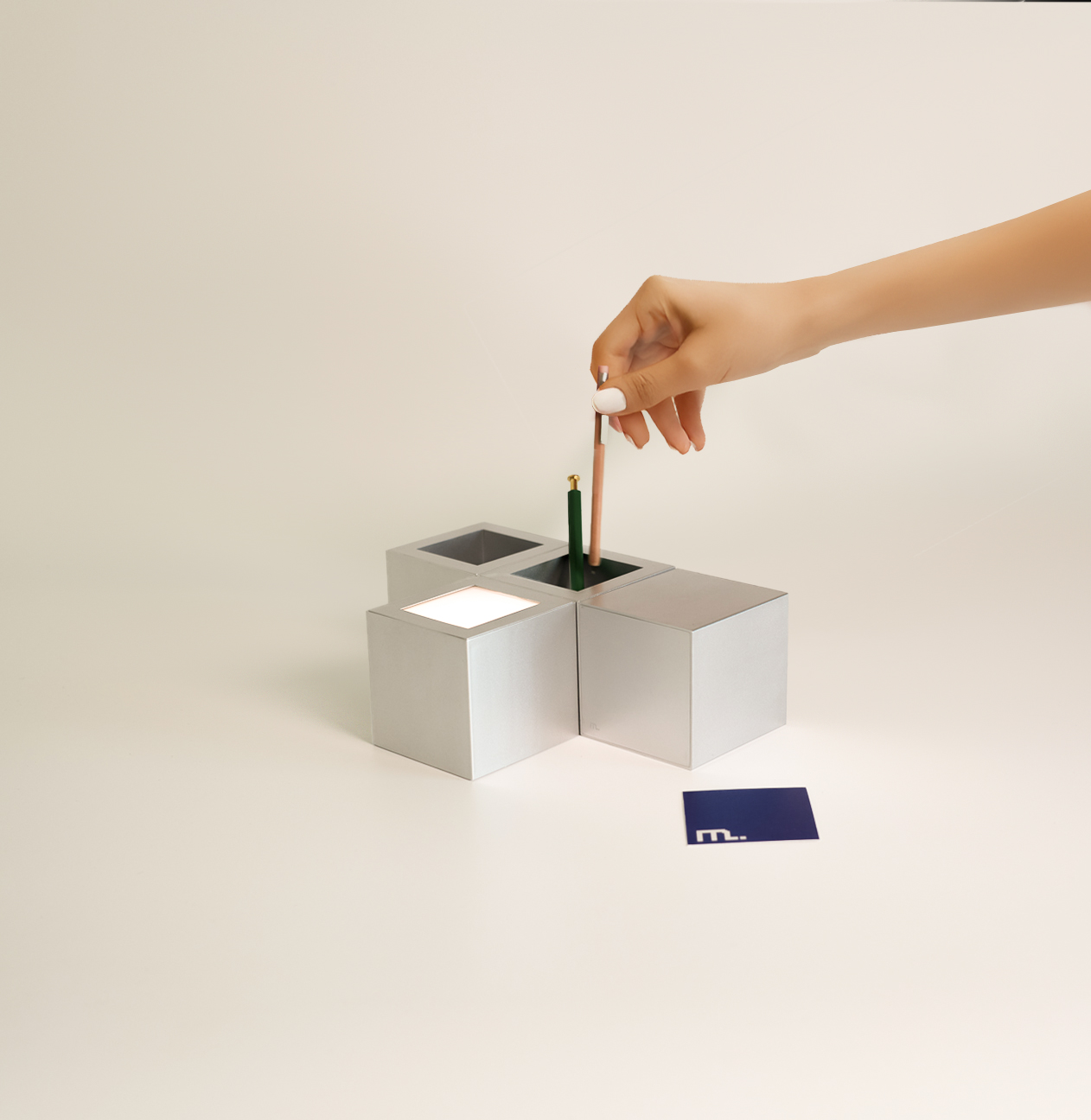 Pixel Series is a 7cm³ modular cube with built-in magnets that easily connects to form lighting, drawers, or holders. The exhibition concept, Pixelism, expresses the idea that a single cube can be infinitely reimagined through diverse designs and lifestyles. It proposes that the small cube, Pixel, can evolve into a new design language within physical spaces.