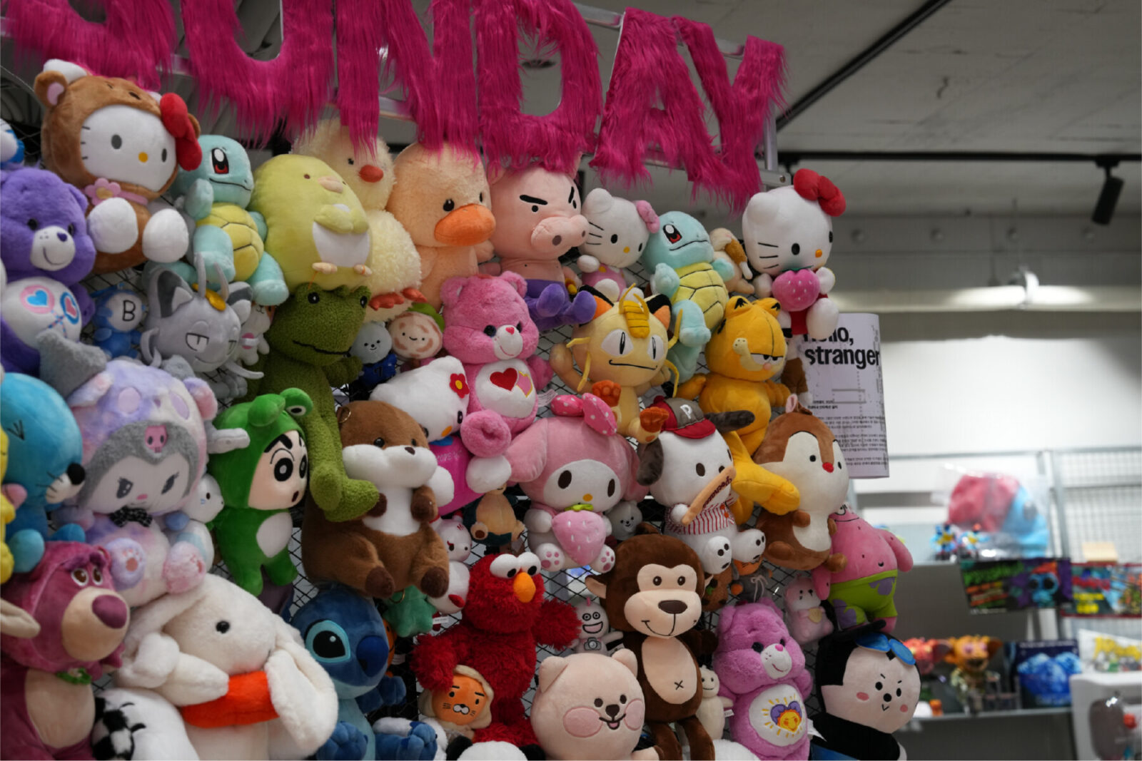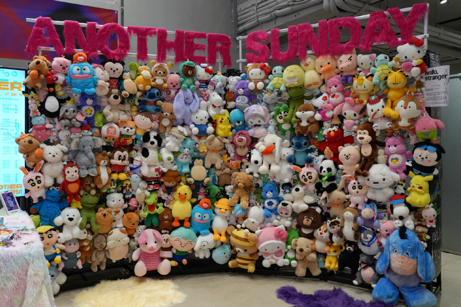어나더선데이의 첫 자체 설치 작품 〈Hello, stranger〉는 관객이 다가오면 수많은 인형들이 손을 흔들며 “안녕!“이라 인사하는 키네틱&인터렉션 작품이다. 인형은 순수한 환대의 몸짓을 담고 있으며, 다양한 인형들이 함께 반기는 장면은 어나더선데이 팀이 직접 관객을 맞이하는 듯한 인상을 준다. 처음 만남의 긴장과 설렘을 기술과 예술의 언어로 번역한 이 작품은, 낯선 이들에게 보내는 따뜻한 인사이자 앞으로 이어질 관계의 출발점을 상징한다.