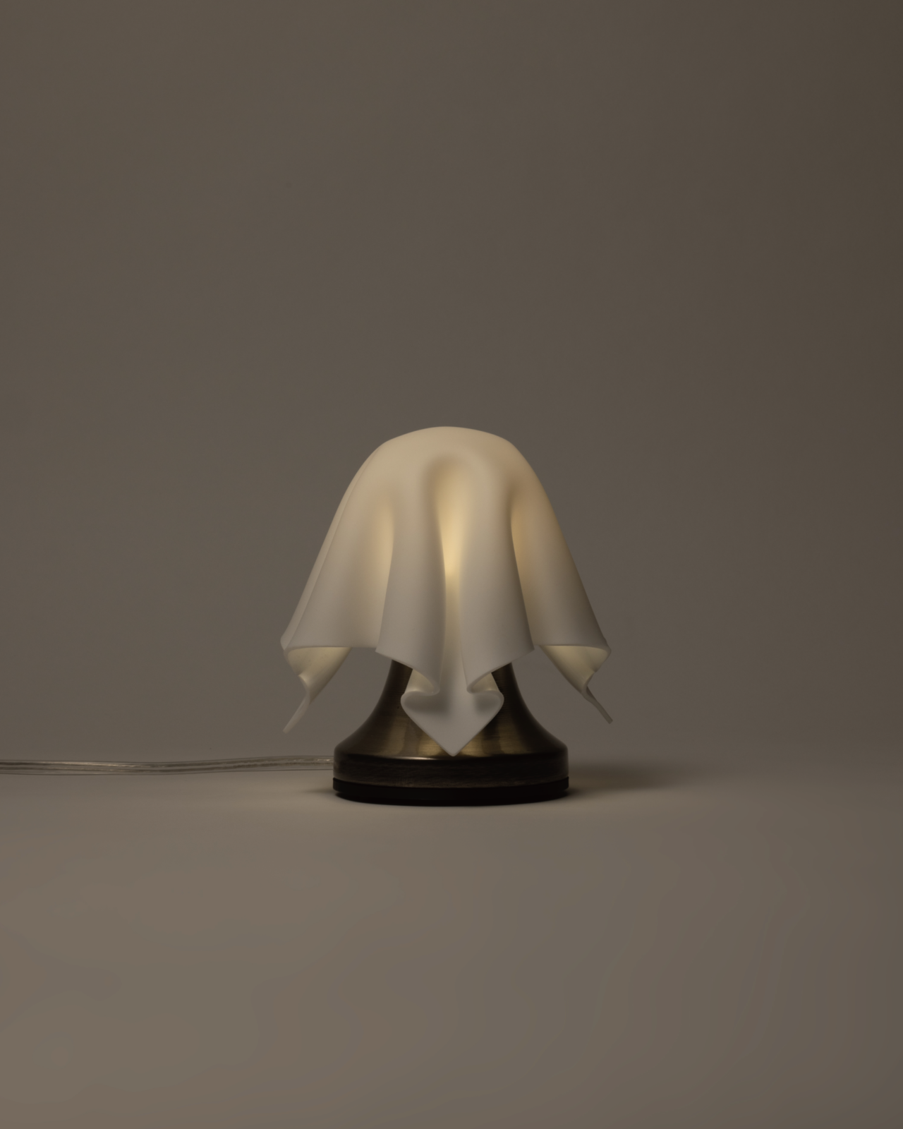 This handcrafted object lamp reinterprets the momentary elegance of fabric’s curves in acrylic form.