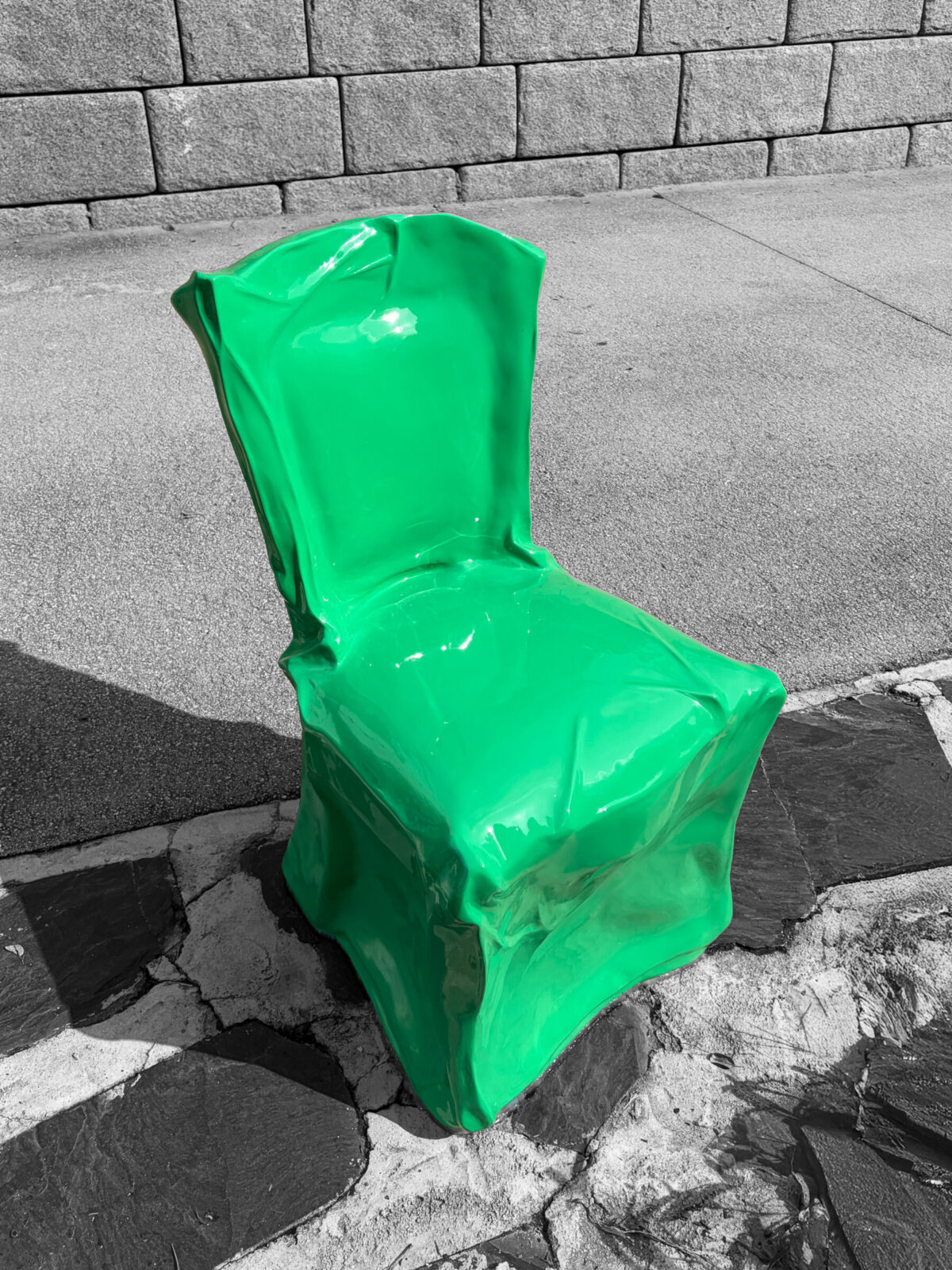 래핑은 감추면서도 드러낸다. 익숙한 기능을 지우고 새로운 가능성을 연다. 색은 공장에서 찍힌 것이 아니라, 시간에 스며든 기억의 흔적이다. 이 전시는 버려진 가구를 유리섬유와 수지로 감싸며, 사물의 태도에 대해 말한다. 이는 의자이면서, 더 이상 의자가 아니다.